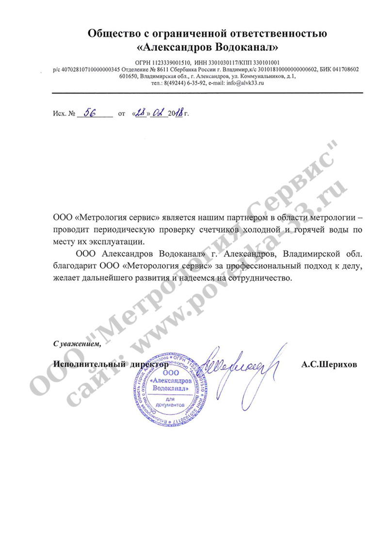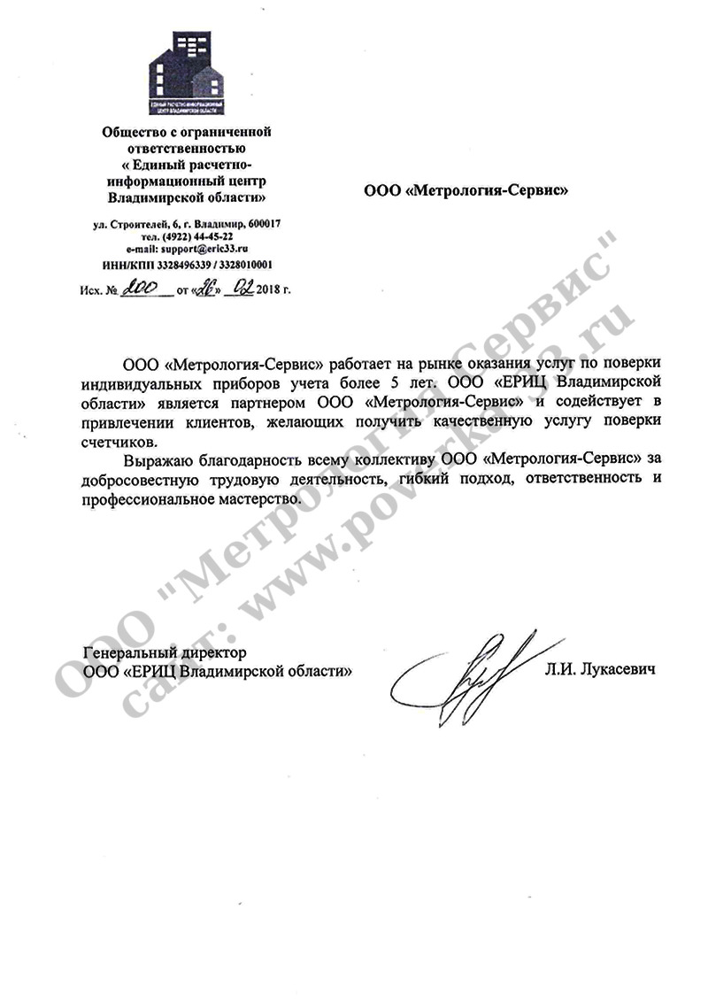 Мы осущевстляем поверку счетчиков в 33 регионе, а так же в других регионах России по согласованию.